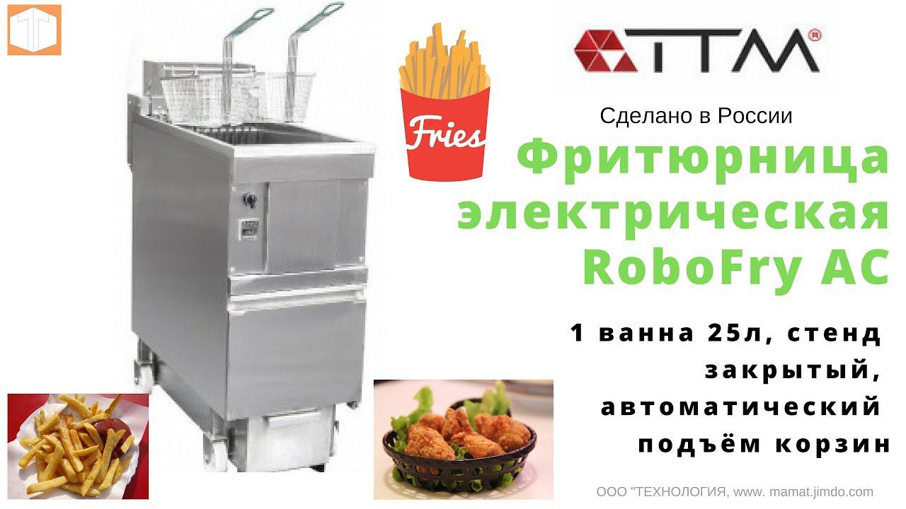 Компания ТЕХНОЛОГИЯ представляет от торговой марки ТТМ: *Фритюрница электрическая, 1 ванна 25л, стенд закрытый, автомат. подъём корзин.* Фритюрница электрическая на закрытом стенде с одной ванной объёмом 25л. Оснащена автоматическим механизмом поднятия корзин и ручным механизмом поднятия тэнов. Имеет холодную зону 1.7 л. для сгоревших частичек продуктов. Фритюрница имеет 6 программ со звуковым сигналом и световой индикацией выбранной программы. Блок управления расположен на фронтальной части фритюрницы и закрыт съёмной панелью с рамкой-держателем для сменной таблички с названием программ. Габариты (мм): 400x900x1150 Напряжение (В): 380 V Мощность (Вт): 14000 Вт Вес нетто (Кг): 70 Объем (М3): 0.414 Объем брутто (М3): 0.492 Гарантия: 12 месяцев ------------------------------------ Спасибо за просмотр! Стоимость доставки будет рассчитана после обработки заявки. Более подробную информацию о оборудовании и ценах можете получить у наших менеджеров по тел.: (4852) 97-54-77, 90-69-80; 90-69-77. 8-800-511-83-07 (Бесплатно по России) https://manat.jimdo.com _ «ТЕХНОЛОГИЯ» — многопрофильная компания, специализирующаяся на комплексном оснащении объектов торговли, предприятий общественного питания и пищевых производств, работающая на рынке профессионального и торгового оборудования. Наш сайт — https://manat.jimdo.com + Присоединяйтесь к нам в соцсетях! ВК — https://vk.com/public156843085 Facebook —https://www.facebook.com/diskont76 Твиттер — https://twitter.com/Technology76 Инстаграм -- https://www.instagram.com/diskont76/ Гугл+ - https://plus.google.com/113915129860185048293