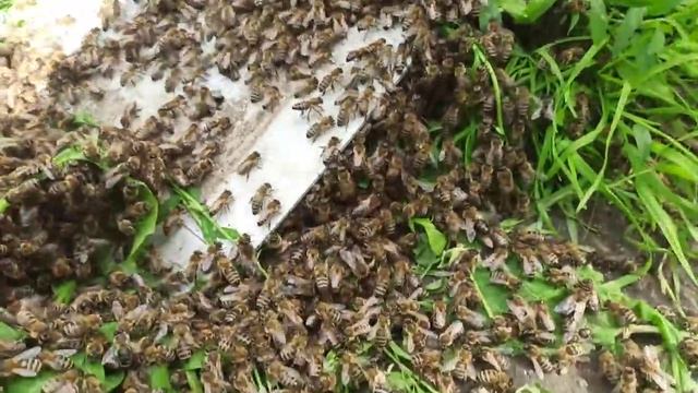 Как я подсаживаю рой пчел в новый улей на пасеке. Пчелиный рой заходит в новое ж