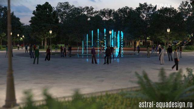 Проект пешеходного фонтана с круглой чашей на площади в Пензе