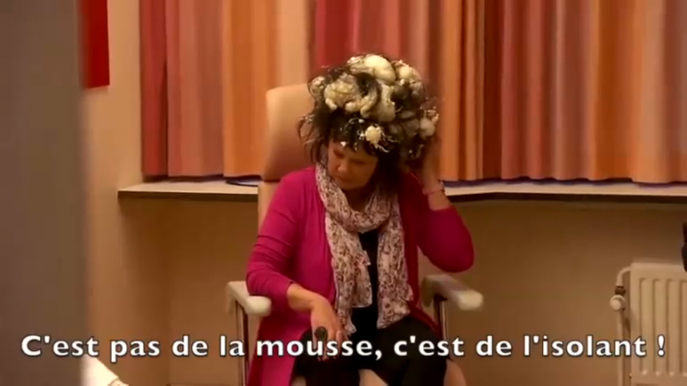 Женщина залила свою голову монтажной пеной.