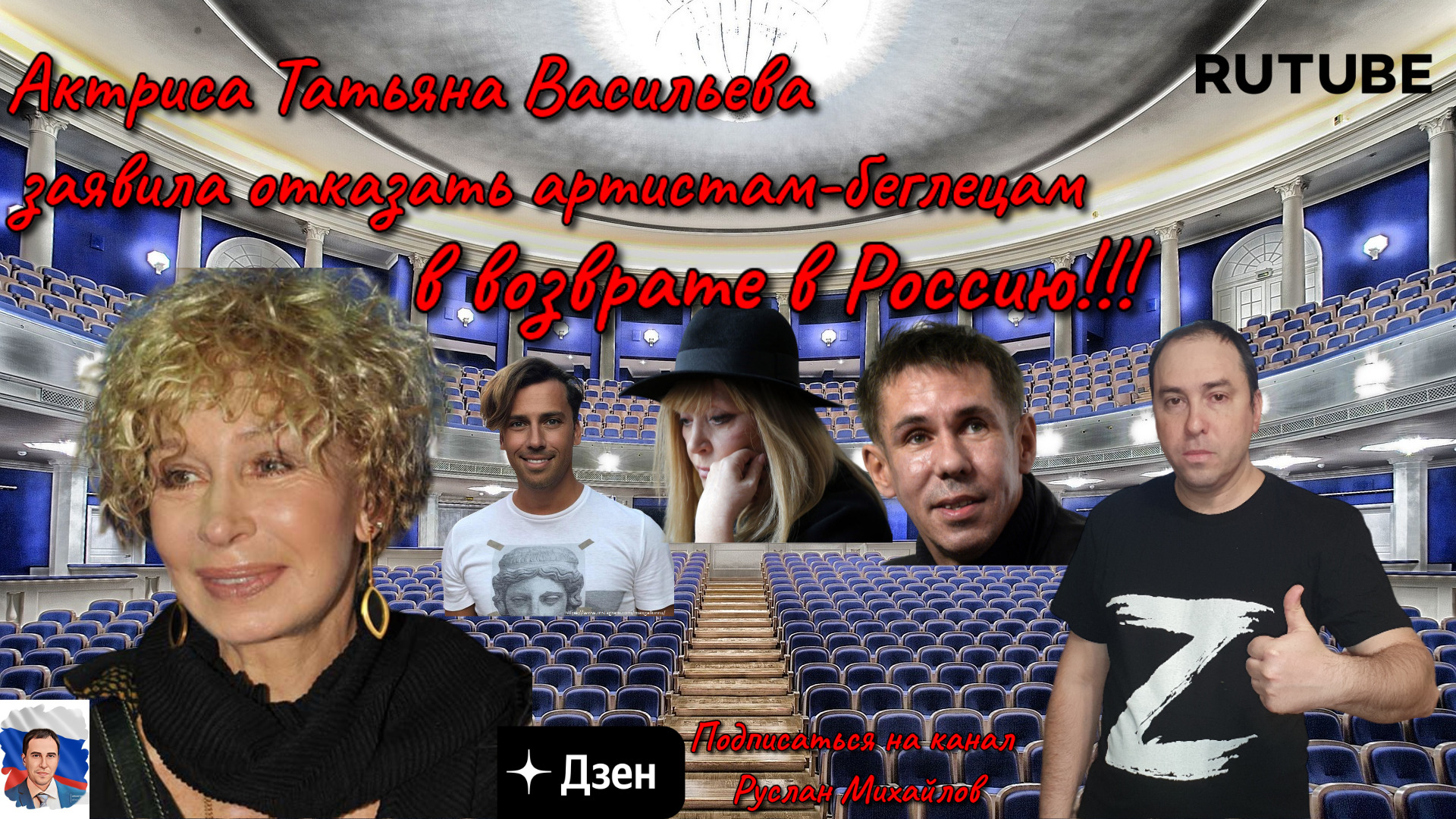 Руслан Михайлов политобозреватель сказал свое личное мнение. Актриса Татьяна Васильева заявила отказать артистам-беглецам в возврате в Россию! Татьяна Васильева народная артистка СССР и России Переехавших за границу актрису Чулпан Хаматову и юмориста Максима Галкина* нужно не пускать обратно в Россию, поскольку такие люди стране не нужны, такое заявление сделала артистка России Татьяна Васильева ссылка на источник https://360tv.ru/tekst/znamenitosti/zdes-takie-ne-nuzhny-vasileva-prizvala-ne-puskat-galkina-i-hamatovu-obratno-v-rossiju/ Поддержка канала ЮMoney 4100117815002119 карта сбер банк 2202202311864023 подписывайтесь на мои каналы на вк vk.com/id558285967 группа на вк vk.com/club202827331 мой телеграмм канал https://t.me/ruslnmikhailov мой дзен канал https://dzen.ru/video/watch/646c5818a3df8419801c03cc рутуб https://rutube.ru/channel/30740209/