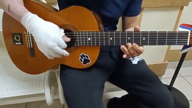 РАНЕНЫЙ В СВО БОЕЦ ПРОБУЕТ ИГРАТЬ НА ГИТАРЕ