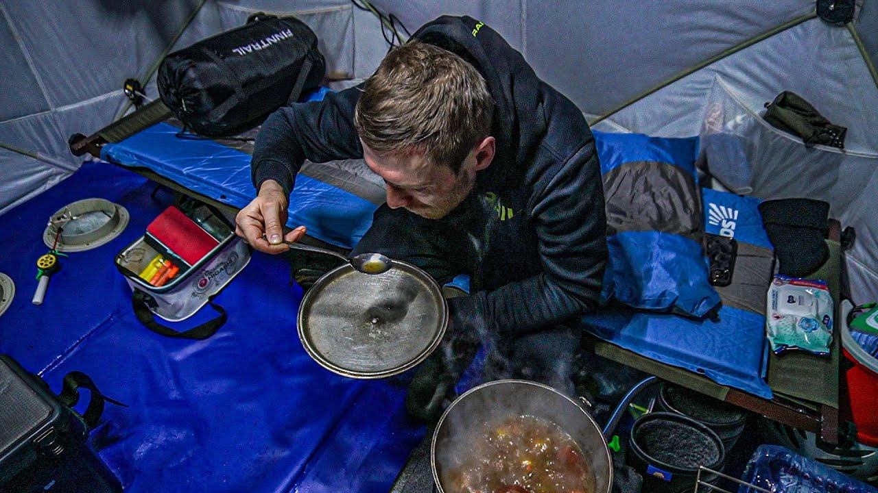 НЕДЕЛЯ НА ЛЬДУ В ПАЛАТКЕ. Заброс шмурдяка. Установка лагеря. Прорубь для бани. Часть 1.