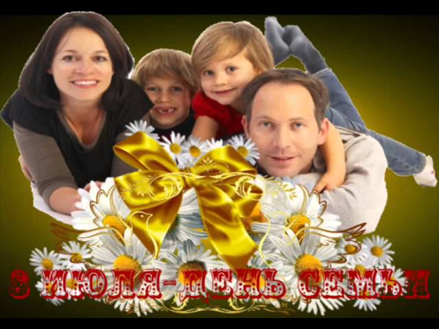 Красивое видео-поздравление с Днём Семьи, Любви и Верности! Песню исполняет Диана Гурцкая. Если нравится ролик, нажимайте на поднятый синий палец и делитесь с друзьями! Делаю на заказ открытки и ролики из любых Ваших фото и картинок Мой скайп: tina27055 Я в ОК https://ok.ru/profile/548294294959 В FB https://www.facebook.com/valentina.ba... B VK https://vk.com/valentina707