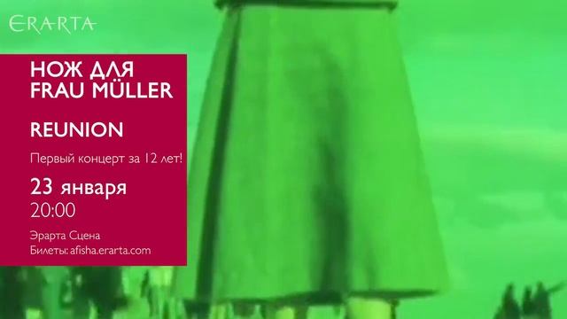 23 января 2016 г. группа «Нож для Frau Müller» даст на Эрарта Сцене первый концерт за двенадцать лет. Подробности и билеты онлайн http://www.erarta.com/ru/calendar/events/detail/2f624c33-a4c2-11e5-bb1a-8920284aa333/
