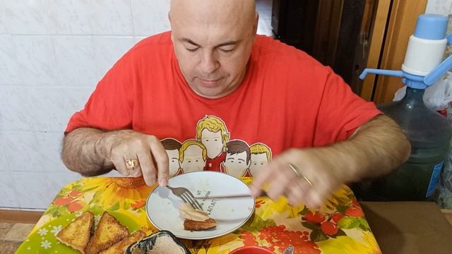 Мукбанг. Завтрак. Гренки по французски, омлет, паштет и чай. О Евпатии Коловрате.