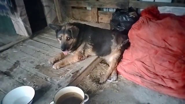 Пёс Пират сидит полулежа