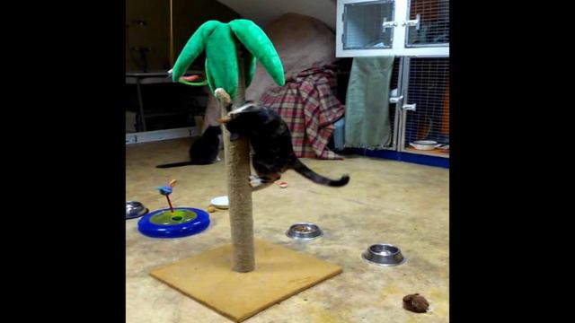 Трехцветный котенок играет