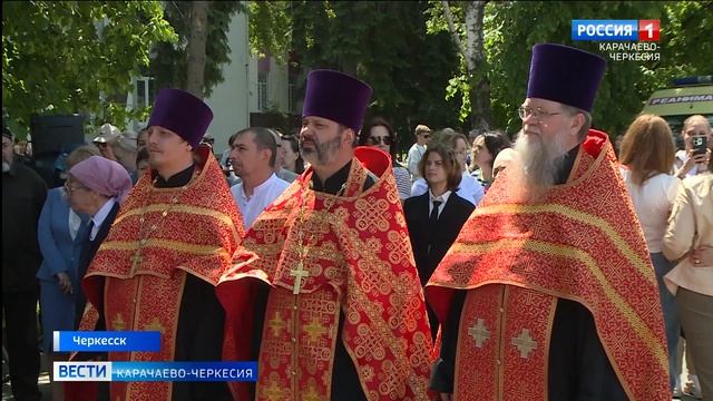 Ко Дню славянской письменности в Черкесске организовали большое мероприятие - крестный ход и торжественный митинг у памятника святым равноапостольным Кириллу и Мефодию.