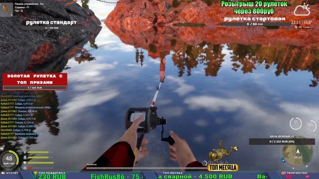 Поддержка донатом https://new.donatepay.ru/@1032463 Альтернативный донат https://www.donationalerts.com/r/kalyamba11 5536913964533059 карта Тинькоф Если стрим лагает,смотри стрим на трово https://trovo.live/s/Kalyamba_na_Ribalke Мой ВК - https://vk.com/kalyantv НИК в игре kalyan11 НАШ ДИСКОРД СЕРВЕР https://discord.gg/3ZeEDGs5h6 Заказ водоема на 1 час - 500р ( весь стрим 2500р ) Модерка на канале 1300р ( каждая следующая на 100р больше) Озвучка доната на 40р,50р,100р,200р,300р,500р,1000р ✅Призы в рулетке "ЗОЛОТАЯ" ✔ ЗОЛОТО ✔ ПРЕМ ✔ КАТУШКИ ЮБИЛЕЙНАЯ БОРЕЛИКА, ВЕНГИ, ТАЙГА, СИЛЬВЕР 80, И другие ✔ ПАЛКИ ПИЛКЕРНАЯ, ДОНКА МОРСКИЕ, ✔ РОД ПОД, СТУЛЬЯ ✅Призы в рулетке СТАНДАРТ : ✔ катушкИ ЮБИЛЕЙНАЯ БОРЕЛИКА, ВЕНГИ, ТАЙГА, СИЛЬВЕР 80, И другие ✔ катушки 60 для медного ( ЭВИИ, НАТОРЫ, ГОЛДА, и тд) ✔ ПИЛКЕРНОЕ УДИЛИЩЕ КОРОЛЕВА ОКЕАНА ✔ Морское Донное удилище ✔ прем ( 3, 7, 30 дней) ✔ золото ( 1, 3, 5, 10, 20 ,50) ✔ билет на море ( 1, 3, 5 дней) ✔ голд наживка и др. ✅Призы в рулетке "СТАРТОВАЯ" ✔ катушка "silver80" ✔ катушка "БЕЛЫЙ КАЛИБР" ✔ катушка "Черный калибр" ✔ катушка "Протон" ✔ катушка "Нарга 6000" ✔ Набор Фидерист и спинингист ✔ Карповик Фортуна ✔ фидерные удилища ✔ прем, золото, алкашка, наживки и тд P.s Рулетка это не казино, а награда за поддержку стримера. Вечный ТОП ПОДДЕРЖКИ (11.05.2024) 1. Dimon_pokemonchik 119 784 2. Interceptor 75 508 3. Skreb79 71 261 4. une personne 68 619 5. Нарвал77 31 550