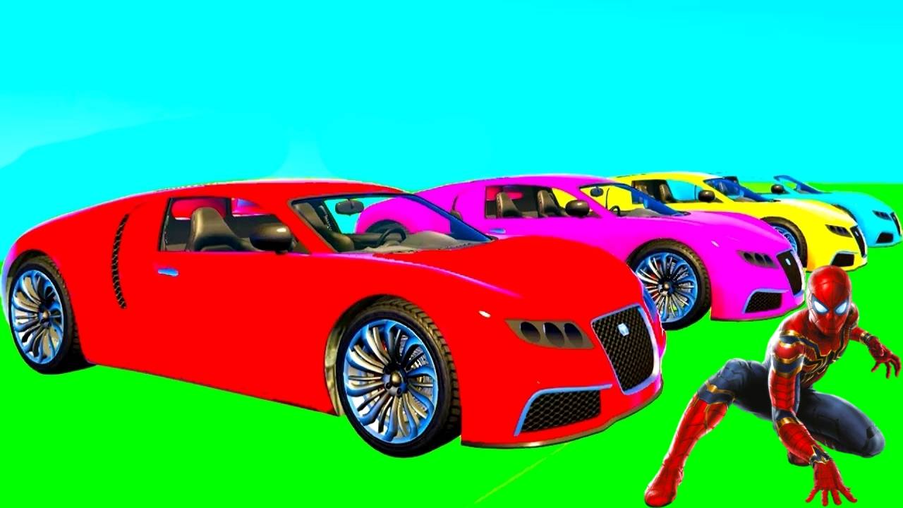 Человек-паук Мультфильм для детей Красочные машинки и цветной автобус для детей с детскими стишками