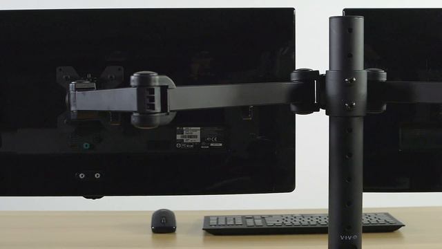 Purchase here: https://amzn.to/2ZXOafu Increase efficiency and create comfortable viewing angles with dual monitor ultra wide desk mount (STAND-V102AM) from VIVO! Win back valuable workspace with this heavy-duty mount that raises two monitor screens (up to 38” in size and 22 lbs in weight) off of your desk and into a comfortable viewing position. The sleek, black appearance blends well with virtually any environment. Offering a variety of features including simple height adjustment and arm articulation for comfortable viewing angles, a sturdy desk clamp for excellent support, and integrated cable management to keep cords clean and organized, this stand was built to perform! All hardware and instructions are provided for assembly, and removable VESA plates make mounting your monitor screens a fast and easy process.