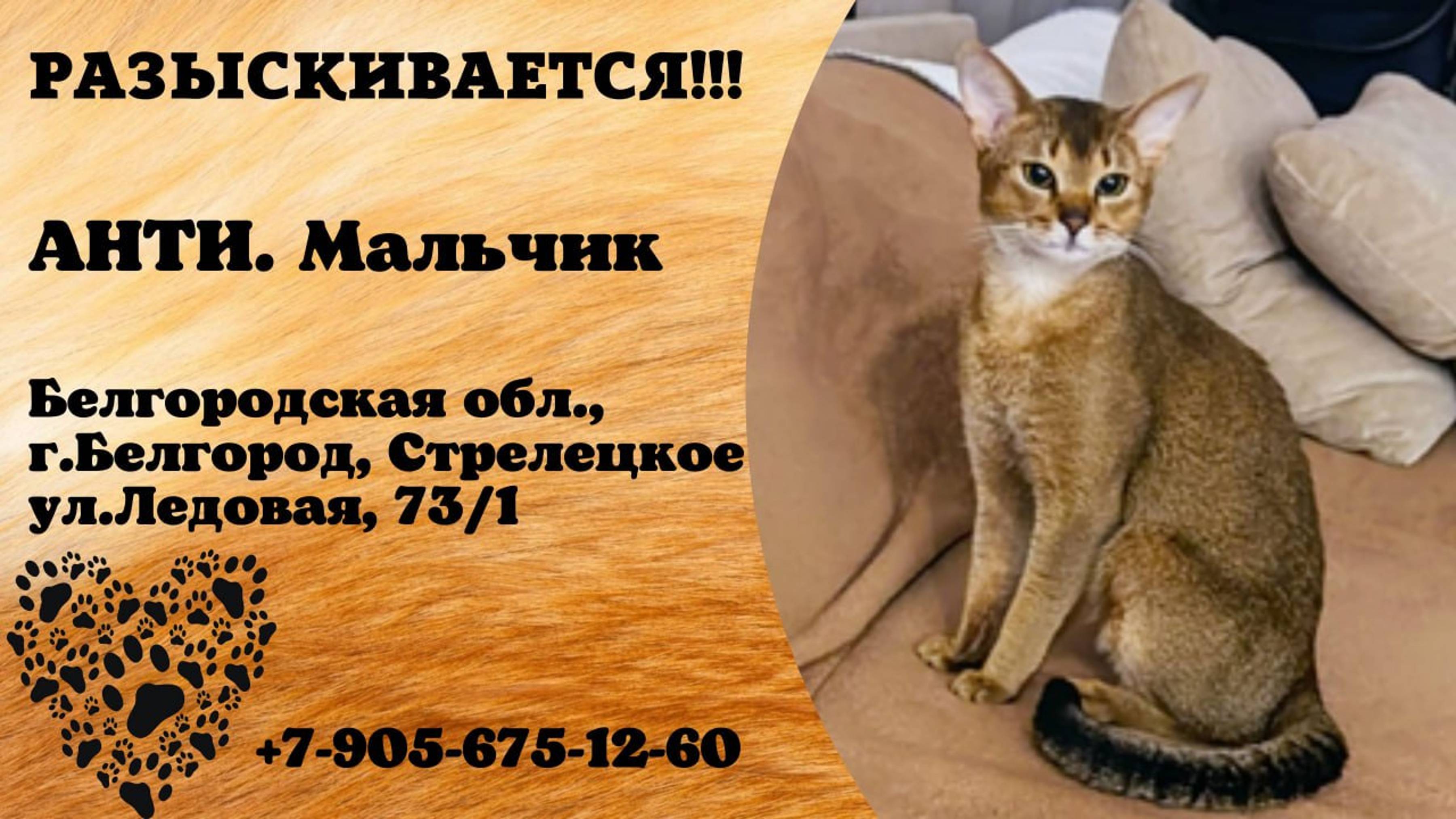 Пропал кот! АНТИ. Мальчик. Белгородская обл, г. Белгород