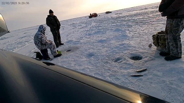 Продолжение рыбалки на омуля... за 22.02.2023. Вид с другой камеры. Клёвая рыбалка получилась.