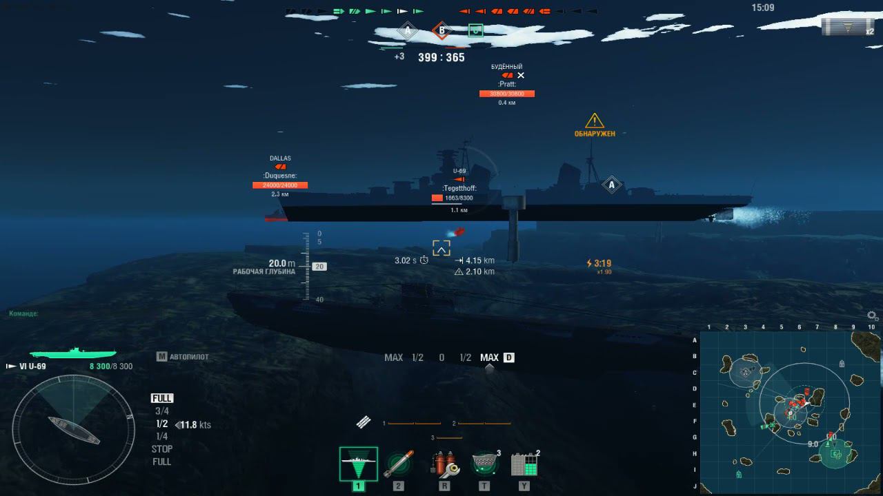 Немецкая подводная лодка U-69.Морской бой-14.Игра World Of Warships