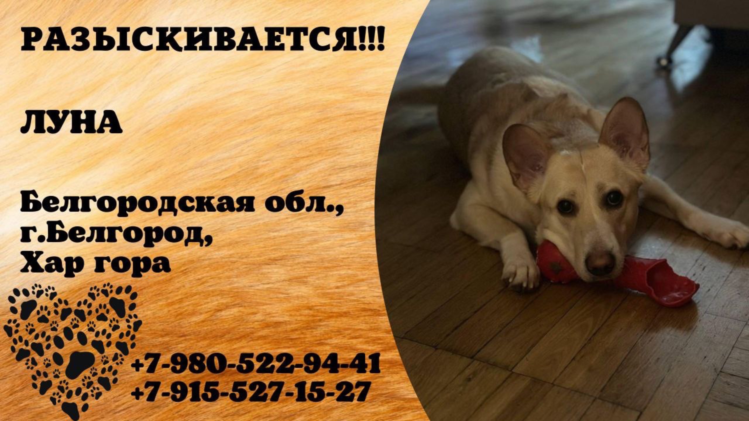 Пропала собака! ЛУНА. Белгородская обл., г.Белгород.