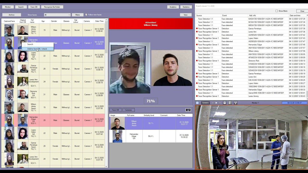 «Face-Интеллект» позволяет найти людей, контактировавших с выбранным лицом, то есть попавших в поле зрения камер одновременно с ним. Эта функция может использоваться для отслеживания контактов человека с выявленной коронавирусной инфекцией или при расследовании противоправных действий — для поиска лиц, вступавших в общение с подозреваемым. Для поиска контактов сначала запускается стандартный поиск лиц, похожих на выбранное изображение, а затем для каждого найденного соответствия производится автоматический поиск лиц, попавших в кадр в течение заданного времени до и после момента распознавания исходного лица.