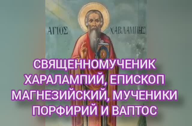 23.02.2026 День памяти Священномученик Харалампий, епископ Магнезийский, мученики Порфирий и Ваптос