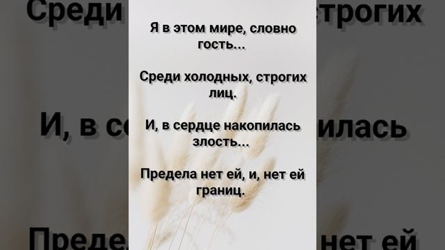 ХРИСТИАНСКИЕ ПЕСНИ ДЛЯ ХВАЛЫ ПОКЛОНЕНИЯ ПРОСЛАВЛЕНИЯ ЕВАНГЕЛИЗАЦИИ ДУХОВНОГО РОСТА ПРОБУЖДЕНИЯ ВОЗРОЖДЕНИЯ #господь#музыка#христианская_музыка#музика#христианскиепесни#бог#христианскиестихи#любовь#христианство#стихи#песня#песни#иисус#иисусхристос#иисусмойбог#иисус_христос#иисусбог#иисусгосподь#хвалы_и_поклонения#хваление#хвала#прославление#духсвятой#духовныйрост#духовноепробуждение#духовность#евангелие#евангелизация#евангельскаявесть#духовный_рост#пробуждение#рождество#рождествохристово#божий#божийнарод#божьеслово  #ХристианскаяПесня #ХристианскоеПоклонение #ХристианскаяНоваяПесня #ПастырьМоейДушы #ХристианскаяМузыка #ПесняСлавы #Иисус #ЛюбовьБожья #ХристианскиеТексты #СлаваГосподу #ВераИПоклонение #ВечнаяЛюбовь #RussianChristianSong #RussianChristianWorship #RussianChristianMusic #RussianWorship #NewRussianChristianMusic  #RussianChristianMusic #RussianSongOfPraise #Jesus #GodsLove #ChristianLyrics #GloryToGod #RussianFaithAndWorship #EternalLove #Пасха #Воскресение #ХристосВоскрес #пробуждение #возрождение https://stihi.ru/avtor... "НУЖДАЮСЬ В БЛАГОДАТИ Я ТВОЕЙ!" СЛОВА, МУЗЫКА, ОБРАБОТКА:  ЖАННА ВОЛКОВА-ВАРЛАМОВА https://stihi.ru/2025/... Стихи Жанна Юрьевна Волкова-Варламова Вступление 1 Куплет Как земля сухая жаждет дождя...  Так я нуждаюсь в Благодати. Поёт Тебе душа заблудшая моя... Ей хочется тепла Твоих объятий. Припев: И как цветок стремится к солнцу, ввысь...  Так я к Тебе тянусь своей душою. Прошу, моей судьбы коснись...  Наполни жизнь мою Собою!  2 Куплет Мой каждый шаг - сомнений тень...  Мой каждый вздох - печали нота. Но я ищу тот светлый день...  Где ждёт меня Твоя забота!  Припев: И как цветок стремится к солнцу, ввысь...  Так я к Тебе тянусь своей душою. Прошу, моей судьбы коснись...  Наполни жизнь мою Собою!  Мой каждый шаг - сомнений тень...  Мой каждый вздох - печали нота. Но я ищу тот светлый день...  Где ждёт меня Твоя забота!  Припев: И как цветок стремится к солнцу, ввысь...  Так я к Тебе тянусь своей душою. Прошу, моей судьбы коснись...  Наполни жизнь мою Собою!  3 Куплет Я в этом мире, словно гость...  Среди холодных, строгих лиц. И, в сердце накопилась злость...  Предела нет ей, и, нет ей границ.  Бридж Пусть смоет дождь следы тревог...  Пусть ветер унесёт всю злость, сомненья. Ты мой единственный и праведный Исток...  Ты - мой Господь... Моё - спасенье!!!  Припев: И как цветок стремится к солнцу, ввысь...  Так я к Тебе тянусь своей душою. Прошу, моей судьбы коснись...  Наполни жизнь мою Собою!  4 Куплет Я заблудился в лабиринте суеты...  Теряя счёт своим ошибкам. Но знаю я, что где-то рядом Ты...  И, путь укажешь мне улыбкой!  Припев: И как цветок стремится к солнцу, ввысь...  Так я к Тебе тянусь своей душою. Прошу, моей судьбы коснись...  Наполни жизнь мою Собою!  Заключение: Нуждаюсь в Благодати я Твоей...  Как в небе солнце нужно птице. Среди пустых и серых дней Дай мне живой воды напиться!!!  26.07.2025 Жанна Волкова-Варламова