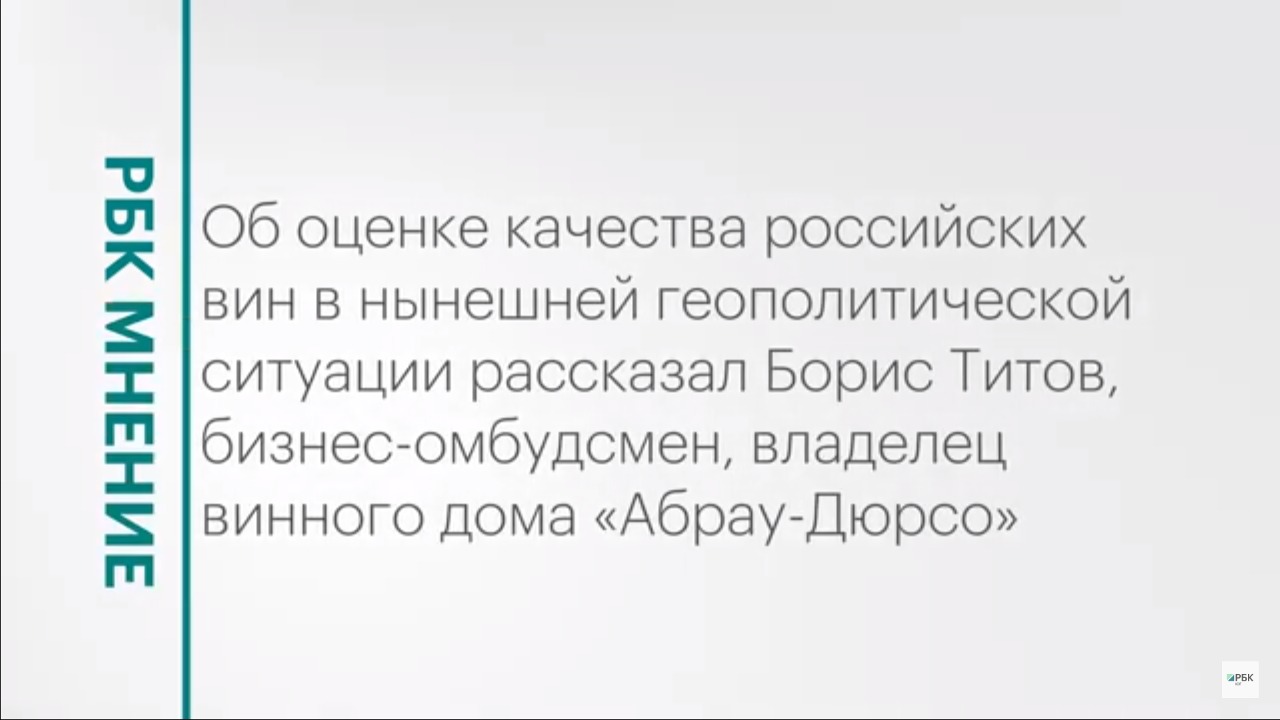 Об оценке качества российских вин в нынешней геополитической ситуации рассказал Борис Титов, бизнес-омбудсмен, владелец винного дома «Абрау-Дюрсо». Подписывайтесь на нас в социальных сетях: ВКонтакте: https://vk.com/rbcyug Telegram: https://t.me/rbc_krasnodar, https://t.me/rbcrostov, https://t.me/rbc_kavkaz Подпишитесь на канал РБК Юг, чтобы смотреть новые выпуски первыми!