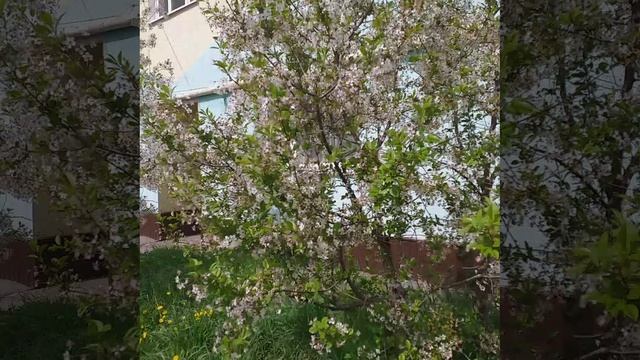 вишня и яблони цветут