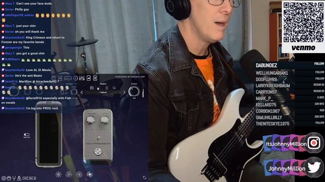 Powered by Restream https://restream.io Thanks for watching! Please like and subscribe. Here is the gear I use on almost every stream: Neural DSP Quad Cortex: https://neuraldsp.com/ Schecter Guitars: https://www.schecterguitars.com/guitars/sun-valley-super-shredder Harley Benton Guitars: https://harleybenton.com/product/fusion-t-hh-roasted-db/ ESP LTD Guitars: https://www.espguitars.com/products/19832-ec-256fm Gibson Guitars; https://www.gibson.com/en-US/Collection/sg Fender Guitars: https://www.fender.com/en-US/electric-guitars/stratocaster/ Washburn Guitars: https://www.washburn.com/instrument-type/electric-guitars/ Warmoth Custom Guitars: https://warmoth.com/ dUg Pinnick Signature 12 String Bass: https://www.schecterguitars.com/dUg-Pinnick-DP-12 dUg Pinnick DP-3X SIGNATURE PEDAL: https://www.tech21nyc.com/products/sansamp/dp3x/ Prism Lens: https://prismlive.com/ EpocCam Pro https://www.elgato.com/ I frequently improvise over jam tracks created by the amazing channels below: https://www.youtube.com/@nowyoushred https://www.youtube.com/@ElevatedJamTracks https://www.youtube.com/@EliteBackingTracks https://www.youtube.com/@JamTracksChannel https://www.youtube.com/@SebastienZunino https://www.youtube.com/@QJamTracks https://www.youtube.com/@PatMatronemusic https://www.youtube.com/@OnlyBackingTracks2023 https://www.youtube.com/@SubFuncJamTracks https://www.youtube.com/@nctracks1914 https://www.youtube.com/channel/UCdMqonsla0BK21Fnf9Qx5Wg https://www.youtube.com/channel/UCEXDaXzYhqYdLCQ3Ce7U2Og Go check them out and support them! Donate: https://account.venmo.com/u/johnnymillion Convoy Music: https://convoyswamprock.com Convoy Shows: https://www.bandsintown.com/a/484248-convoy Johnny Million Music: https://open.spotify.com/artist/2OK4fDqFS1Ue5FiSVSJ9Sh?si=zORx-xDfQX-s43_zOtS6gA MarsVenusMoon Official Site: https://www.marsvenusmoon.band/ Merch: https://www.shopjohnnymillion.com/ Twitch: https://www.twitch.tv/itsjohnnymillion YouTube: https://www.youtube.com/@itsjohnnymillion Instagram: https://www.instagram.com/itsjohnnymillion/