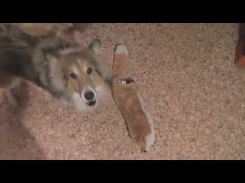 Собака шелти Лета. Лета играет с Настей и любимой лисичкой-игрушкой. январь 2021