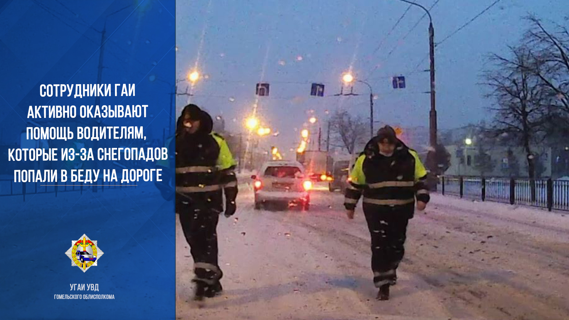 Сотрудники ГАИ активно оказывают помощь водителям, которые из-за снегопадов попали в беду на дороге