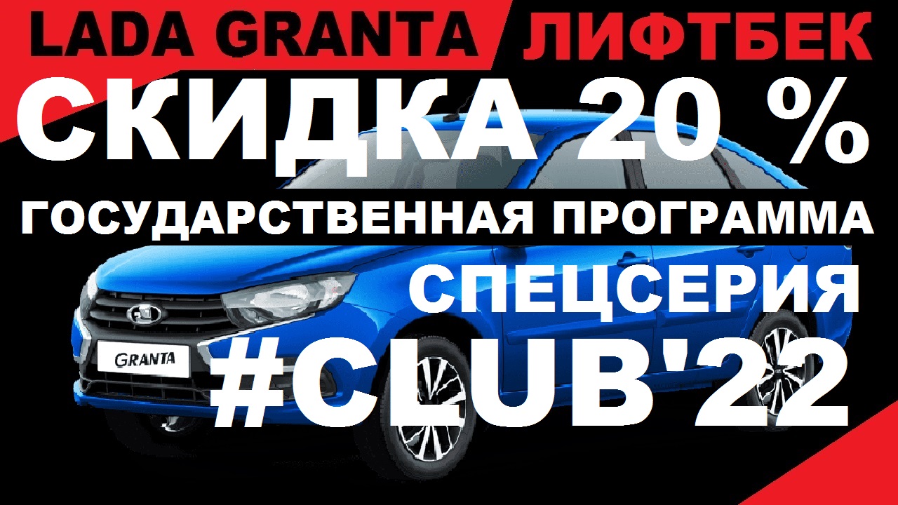 СКИДКА 20% ПО ГОСПРОГРАММЕ НА ГРАНТУ ЛИФТБЕК В КОМПЛЕКТАЦИИ #CLUB'22, Цвет Синий.