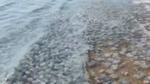 ⚡️Нашествие медуз у побережья крымской Керчи. Тёплая морская вода превратилась в подобие «живого» киселя. Очевидцы сообщают, что тысячи медуз выбрасываются на берег, из-за чего купание стало почти невозможным.