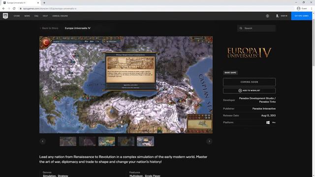 EUROPA UNIVERSALIS GRATIS EN EPIC GAMES