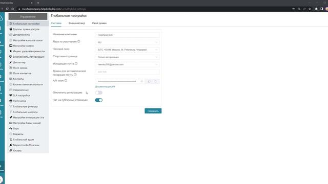 Обзор возможностей меню "Глобальные настройки" в нашем хелпдеске. Подключение своего домена: https://support.helpdeskeddy.com/ru/knowledge_base/article/208/category/53/ Настройка внешнего вида: https://support.helpdeskeddy.com/ru/knowledge_base/article/324/category/53/ Наши контакты: https://helpdeskeddy.ru/kontakti