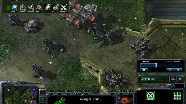 A Starcraft 2 commentary between Axslav playing as protoss and qxc playing as terran on the map Steppes of War.