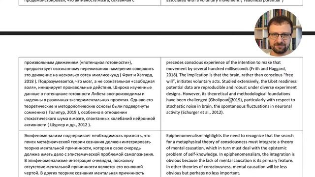 Читаем статью Robert Lawrence Kuhn (2024), «A landscape of consciousness: Toward a taxonomy of explanations and implications» / Progress in Biophysics and Molecular Biology 190: pp. 28–169. https://doi.org/10.1016/j.pbiomolbio.2023.12.003 Разобраны три теории: 00:00:00 — Начало эфира 00:08:00 — 9.1.1. Элиминативный материализм, он же редуктивный физикализм, он же иллюзионизм 00:31:03 — 9.1.2. Эпифеноменализм 00:54:36 — 9.1.3. Функционализм Хост — Алексей Ёжиков, клинический психолог, executive-коуч, руководитель школы когнитивно-поведенческого бизнес-коучинга SCBBC (https://scbbc.ru). Подпишитесь на телеграм-канал школы: https://t.me/scbbc_ru