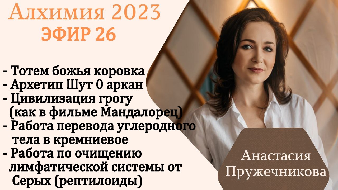 Все практики и теория актуальна здесь и сейчас, так как энергия понятие многомерное) - Тотем божья коровка - Архетип Шут 0 аркан - Цивилизация грогу (как в фильме Мандалорец) - Работа перевода углеродного тела в кремниевое - Работа по очищению лимфатической системы от Серых (рептилоиды) Божья коровка распаковалась во время теории и с энергией Крайона, я сначала такая, как это не было ее, а потом пришел ответ. Просим ВЯ загрузить коды сонастройки с тотемом божьей коровки, распаковать, активировать в ДНК и ХА ,заземлить в Гайе (можно вслух произнести, можно про себя) Мои контакты: Инстаграм : @anastasiyapruzhechnikova_psy Вконтакте: https://vk.com/anastasiyapruzhechnikova YouTube / @anastasiyapruzhechnikova Телеграм : Личные сообщения https://t.me/AnastasiyaPruzhechnikova Канал https://t.me/anastasiyapruzhechnikova... Телефон для мессенджеров вотсап и вайбер +79158694616 Рутуб: https://rutube.ru/channel/24424664 Отправить донат (финансовую благодарность) автору можете по номеру телефона (система быстрых платежей) 89158694616 (Анастасия Андреевна П) или карте Тинькофф