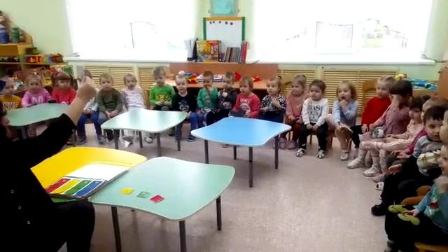 В группе "Зайчата "продолжают закреплять знание цветов и геометрических фигур.