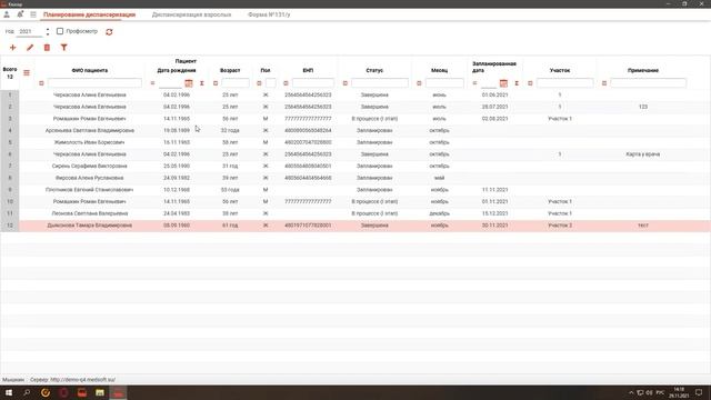 29.11.2021 - Квазар 4 - подсистема "Диспансеризация и профосмотры"