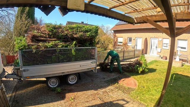 В конце февраля мне позвонил клиент и сказал, что хочет поставить новый забор между своим участком и соседским, который он заказал. Всё бы хорошо, но была проблема: там росла живая изгородь, которую сначала нужно было убрать. Он спросил, смогу ли я сделать это 27 февраля, потому что с марта такие работы запрещены из-за гнездования птиц, но у меня была расписана вся неделя, и новые заказы я планировал через неделю. Однако я решил помочь хозяину, тем более, как он сказал, изгородь была не длиннее 10 метров. На следующий день, приехав на место, я оценил объём работы. Это была изгородь из туи, поэтому я сразу начал спиливать её бензопилой, чтобы освободить стволы деревьев. Проверив их на прочность, я понял, что корни очень слабые, потому что изгородь сильно шаталась при движении. Поэтому я взял лопату и кирку, которых оказалось достаточно для этой работы. Некоторые деревья были полностью сухими, и я просто вытаскивал их руками, но другие крепко держались в земле, поэтому я работал киркой, но иногда она натыкалась на камни, которые были разбросаны повсюду, поэтому я пытался их убрать, но некоторые были глубоко в земле. Когда я снова убирал камни возле корня, в корнях я нашёл фигурку гнома, она, очевидно, пролежала там долгое время. К этому времени хозяин принёс мне колу, на которой даже написал моё имя, что было приятно. Сделав небольшой перерыв, я продолжил работу. Оставалось совсем немного, но даже удаление изгороди такой длины — не такая уж лёгкая задача. Я промок насквозь, и мне даже показалось, что у последних деревьев были самые сильные корни, но это, наверное, просто из-за усталости. Закончив работу почти за три часа, я уехал на другую работу и вернулся через час с прицепом. Начал уборку, перетаскивая всё в прицеп. Ещё не убрав и половины, я полностью заполнил прицеп, поэтому отложил остальное, чтобы вернуться и забрать позже, так как нужно было спешить на другую работу. Разгрузив прицеп на свалке, я поехал по другому адресу, где нужно было подстричь изгородь из лавра. Недавно я удалял там несколько кустов, так как клиент хотел подготовить место для садового сарая. Сначала я подстриг обе стороны изгороди, а затем верх с помощью стремянки. После этого немного подровнял края и начал уборку, собирая все обрезки в зелёные мешки. Я торопился, потому что уже темнело, но мне оставалось только сдуть всё, что я не собрал. К сожалению, я не сделал фотографии до и после второй работы, так как времени было мало. Первая работа по расчистке заняла у меня около 4 часов и потребовала два полных прицепа, а вторую работу я сделал за 3 часа.