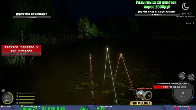 Поддержка донатом https://www.donationalerts.com/r/kalyamba11 Альтернативный донат https://new.donatepay.ru/@1032463 Если стрим лагает,смотри стрим на трово https://trovo.live/s/Kalyamba_na_Ribalke ТОП 1 ДОНАТЕР МЕСЯЦА поддерживающий трансляции получит подарок в виде катушки TAIGA c40 2s Мой ВК - https://vk.com/kalyantv НИК в игре kalyan11 НАШ ДИСКОРД СЕРВЕР https://discord.gg/mSbnTJK8TB Заказ водоема на 1 час - 500р ( весь стрим 2500р ) Модерка на канале 1100р ( каждая следующая на 100р больше) Озвучка доната на 40р,50р,100р,200р,300р,500р,1000р ✅Призы в рулетке "ПРЕМИУМНАЯ" ✔ ЗОЛОТО ✔ ПРЕМ ✔ КАТУШКИ РАПТОР 40, АЗИМУТ 10000, СИЛЬВЕР 80, ТАЙГА с 30 ЮБИЛЕЙНАЯ, ✔ ПАЛКИ ПИЛКЕРНАЯ, ДОНКА МОРСКИЕ, ТОП КАСТИНГ ✔ РОД ПОД, СТУЛЬЯ ✅Призы в рулетке СТАНДАРТ : ✔ катушка "РАПТОР 40" ✔ катушка "АЗИМУТ 10000" ✔ катушка "ТАЙГА С30, С40, С30 (юбилейная)" ✔ катушки 60 для медного ( ЭВИИ, НАТОРЫ, ГОЛДА, и тд) ✔ ПИЛКЕРНОЕ УДИЛИЩЕ КОРОЛЕВА ОКЕАНА ✔ Тяжелый кастинговый спиннинг "Барракуда" ✔ Морское Донное удилище ✔ прем ( 3, 7, 30 дней) ✔ золото ( 1, 3, 5, 10, 20 ,50) ✔ билет на море ( 1, 3, 5 дней) ✔ голд наживка и др. ✅Призы в рулетке "СТАРТОВАЯ" ✔ катушка "silver80" ✔ катушка "БЕЛЫЙ КАЛИБР" ✔ катушка "Черный калибр" ✔ катушка "Протон" ✔ катушка "Нарга 6000" ✔ Набор Фидерист и спинингист ✔ Карповик Фортуна ✔ фидерные удилища ✔ прем, золото, алкашка, наживки и тд P.s Рулетка это не казино, а награда за поддержку стримера. Вечный ТОП ПОДДЕРЖКИ (11.05.2024) 1. Dimon_pokemonchik 119 784 2. Interceptor 75 508 3.Skreb79 71 261 4. une personne 68 619 5. Нарвал77 31 550