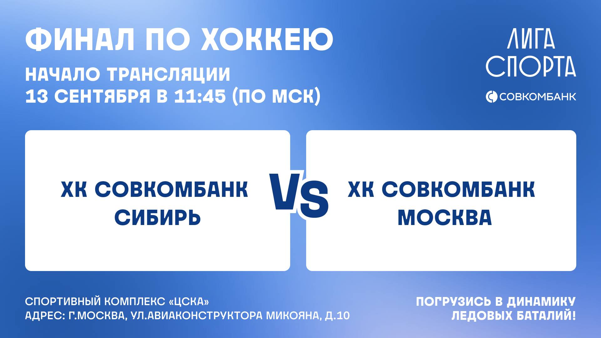 Лига Спорта Матч между командами ХК Москва Совкомбанк VS ХК Сибирь Совкомбанк