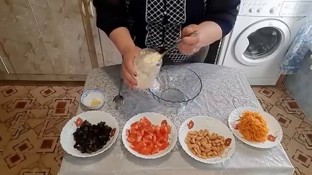 Салат просто изумительно вкусный получается, гости точно будут в восторге!! При минимальном количестве продуктов в приготовите шедевр на праздничный стол!! РЕЦЕПТ: - 300 гр мороженных грибов ( можно свежие шампиньоны, вешенки, у меня лесные) - 2 томата - 1 банка фасоли - 100-120 гр морковки по-корейски - 2 зубчика чеснока - 1 ст л домашнего майонеза ******************************************************************** ВСЕМ ПРИЯТНЫХ ВЫХОДНЫХ!! От Татьяны с любовью 💞💞💞