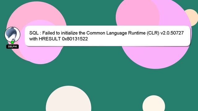 SQL : Failed to initialize the Common Language Runtime (CLR) v2.0.50727 with HRESULT 0x80131522 To Access My Live Chat Page, On Google, Search for "hows tech developer connect" As promised, I have a secret feature that I want to reveal to you. This is a YouTube's feature which works on Desktop. First, Make sure the video is currently in playing mode. Then, type the letters 'awesome' on your keyboard as the next step. The progress bar on YouTube will be altered to a flashing rainbow. A short overview of who I am, Welcome, I'm Delphi. I am here to aid you in getting answers to your questions. SQL : Failed to initialize the Common Language Runtime (CLR) v2.0.50727 with HRESULT 0x80131522 Don't hesitate to leave a comment or start a chat if you have a more specific question. If you have an answer or any additional information on the answer, please leave a comment below. Your answer will be recognized and appreciated, and I will 'heart' it to show my appreciation. Common Language with SQL HRESULT v2.0.50727 (CLR) : the to Runtime Failed 0x80131522 initialize
