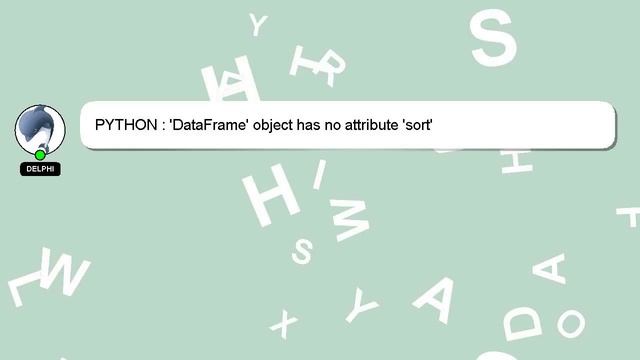 PYTHON : 'DataFrame' object has no attribute 'sort' To Access My Live Chat Page, On Google, Search for "hows tech developer connect" I promised to share a hidden feature with you, and here it is. This is a YouTube's feature which works on Desktop. First, Ensure that the video is playing before proceeding. After that, type the word 'awesome' on your keyboard. Your YouTube progress indicator will turn into a shimmering rainbow. An introduction to myself in a few words, Nice to meet you, I am Delphi. I am happy to help you with your questions. PYTHON : 'DataFrame' object has no attribute 'sort' If you have more specific query you can comment or chat with me and let me know your queries. Your thoughts and contributions are welcome, so please leave a comment below if you have an answer or insights to the answer. A 'heart' from me will be given to show my gratitude for your contribution. object PYTHON no : 'sort' 'DataFrame' has attribute