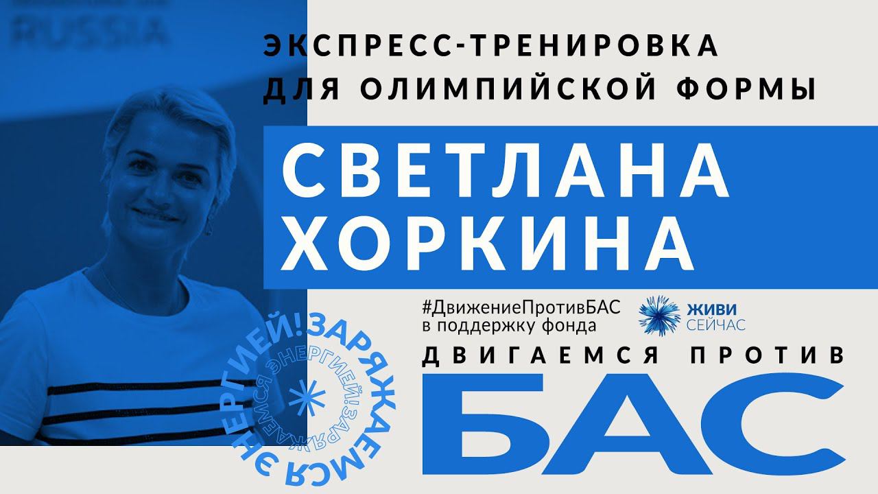 #ДвижениеПротивБАС #ЖивиСейчас #СветланаХоркина Короткая тренировка от олимпийской чемпионки Светланы Хоркиной. Сделать пожертвование в фонд «Живи сейчас» - https://alsfund.ru/campaign/pomoch-fondu/ 19 июня, в канун Международного дня борьбы с БАС, прошел 10-часовой онлайн-марафон в поддержку благотворительного фонда «Живи сейчас». Артисты, спортсмены, блогеры и известные люди объединились, чтобы собрать средства на работу единственного фонда, который помогает людям с БАС (болезнью Стивена Хокинга) – тем, кого болезнь лишает возможности двигаться.
