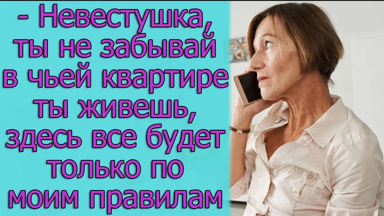 - Невестушка, ты не забывай в чьей квартире ты живешь, здесь все будет только по моим правилам