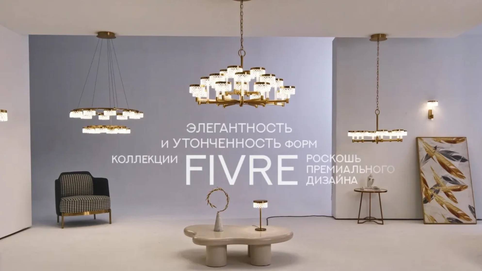 Большая линия Fivre представлена 9 моделями: люстры различной конфигурации, подвесы, настенные светильники, настольная лампа. Высококачественный акрил с фактурным орнаментом великолепно преломляет свет, поэтому переливы и сияние словно окутывают плафоны и дают красивые отсветы на поверхности. Благородное покрытие под античную бронзу придает особую роскошь дизайну коллекции Fivre. Такая большая линейка светильников будет прекрасно смотреться в современных дорогих интерьерах в стиле неоклассика и позволит осветить много зон и помещений в одном стилевом решении.