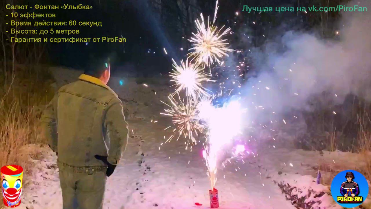 Салют - Фонтан «Улыбка» Арт: Tkf863 - 10 эффектов - Время действия: 60 секунд - Высота: до 5 метров - Гарантия и сертификат от PiroFan