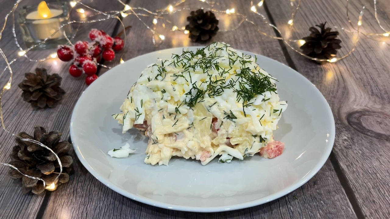 НОВОГОДНИЙ САЛАТ С КРАСНОЙ РЫБОЙ