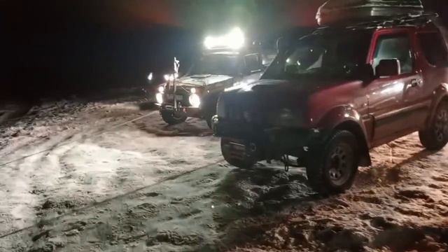 ЛендРовер, застрявший во льдах озера Ройка удалось вытащить усилиями кучи машин и порванных тросов