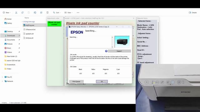 Resetting the Ink Pad in Epson L3256 Printer